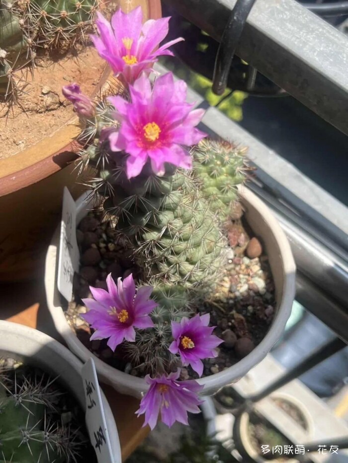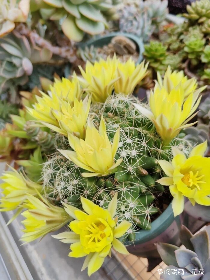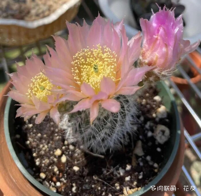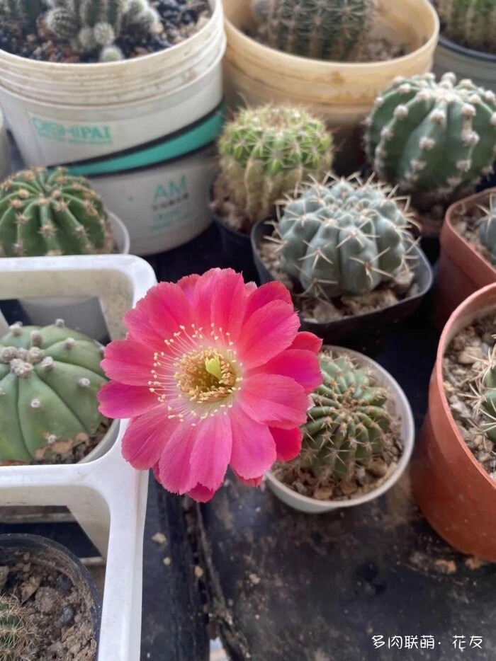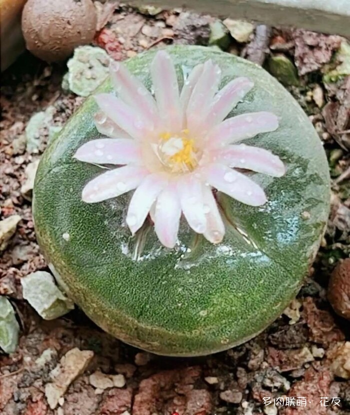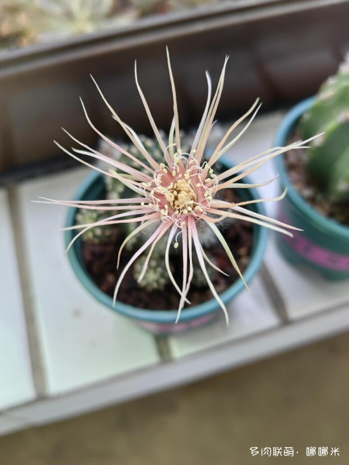 ↓山东“曼娘”的金星,乳突球属的。更了那么多篇,彩草、金刚、丽花、裸萼球属、鹿角柱属的都看了个遍,终于看到开花的乳突球属。